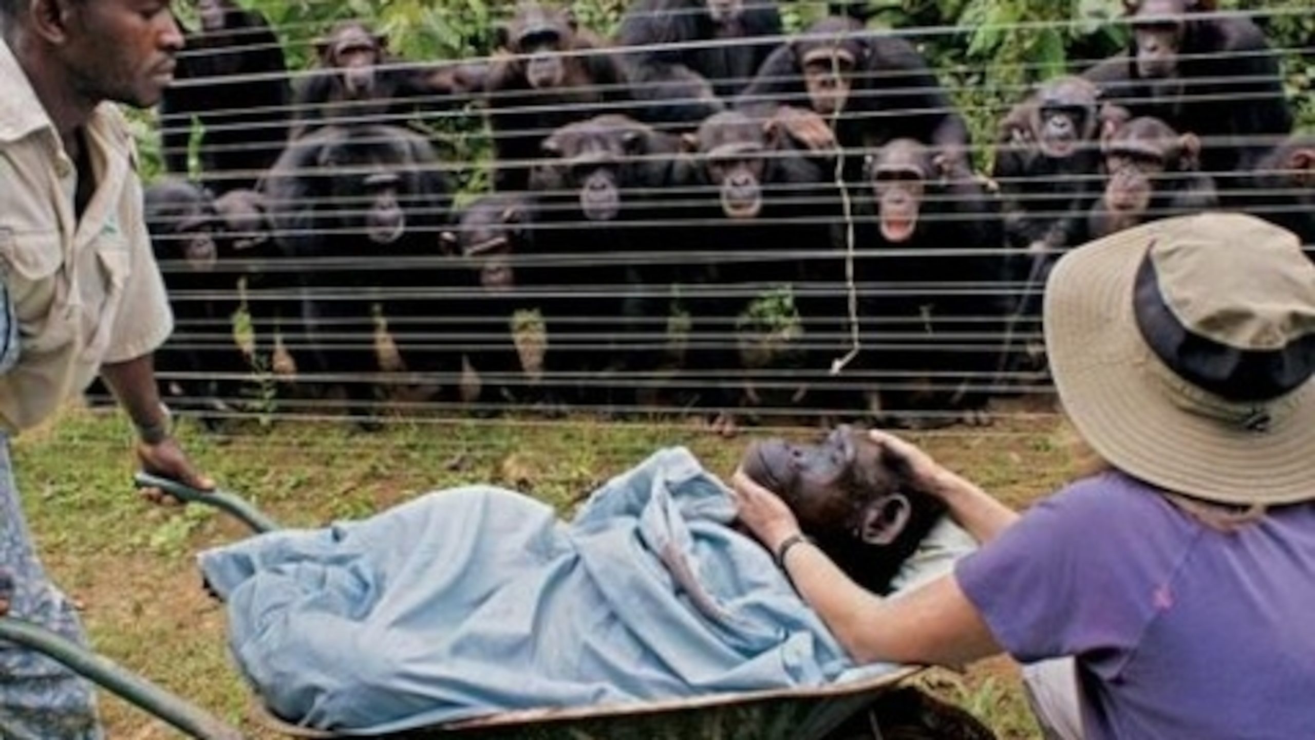 "On September 23, 2008, Dorothy, a female chimpanzee in her late 40s, died of congestive heart failure. A maternal and beloved figure, Dorothy had spent eight years at Cameroon's Sanaga-Yong Chimpanzee Rescue Center, which houses and rehabilitates chimps victimized by habitat loss and the illegal African bushmeat trade.... Szczupider, who had been a volunteer at the center, told me: 'Her presence, and loss, was palpable, and resonated throughout the group. The management at Sanaga-Yong opted to let Dorothy's chimpanzee family witness her burial, so that perhaps they would understand, in their own capacity, that Dorothy would not return. Some chimps displayed aggression while others barked in frustration. But perhaps the most stunning reaction was a recurring, almost tangible silence. If one knows chimpanzees, then one knows that [they] are not [usually] silent creatures.'"