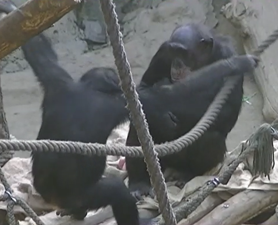 In many cases, these potentially ostensive behaviours were indeed attention catching but not in a heavy-handed way. In other cases, however, ostension in chimps (and in humans) can be insistent or even obtrusive. One video showed a young adult male, Bangolo, who really, really wanted to touch the infant that Swela held in her arms, but would she let him? Bangolo not only attracted the attention of Swela and made his request manifest but also became quite insistent and more and more agitated about it. Elizabeth asked us: was Bangolo’s behaviour an example of ostension? Prima facie, it was. Bangolo’s behaviour forced Swela to pay attention and rendered his request to be allowed to touch the infant quite pressing.