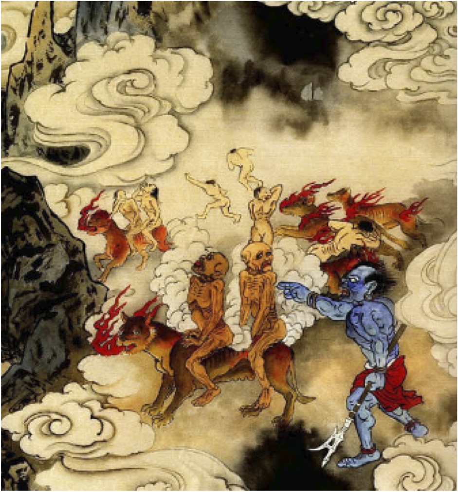 Grim pictures of the afterlife (or lack thereof) are not limited to the Judeo-Christian and Greek traditions. In Shintoism (Japan), the pre-Buddhist hereafter was Yomi, is a Sheol-like place where the dead are in a continuous state of decomposition (see image).