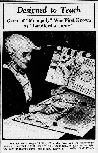 Determined to prove the merit of George’s proposal, Magie invented and in 1904 patented what she called the Landlord’s Game. Laid out on the board as a circuit (which was a novelty at the time), it was populated with streets and landmarks for sale. The key innovation of her game, however, lay in the two sets of rules that she wrote for playing it.